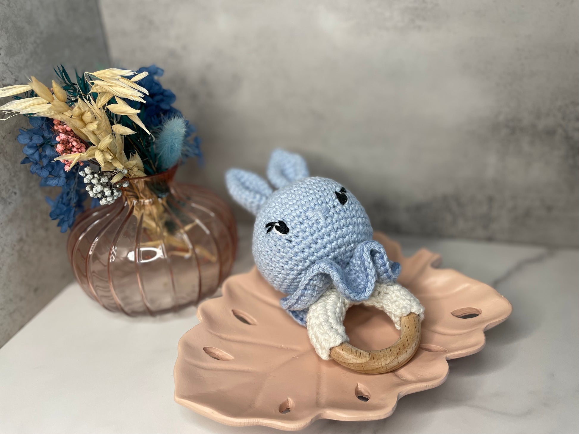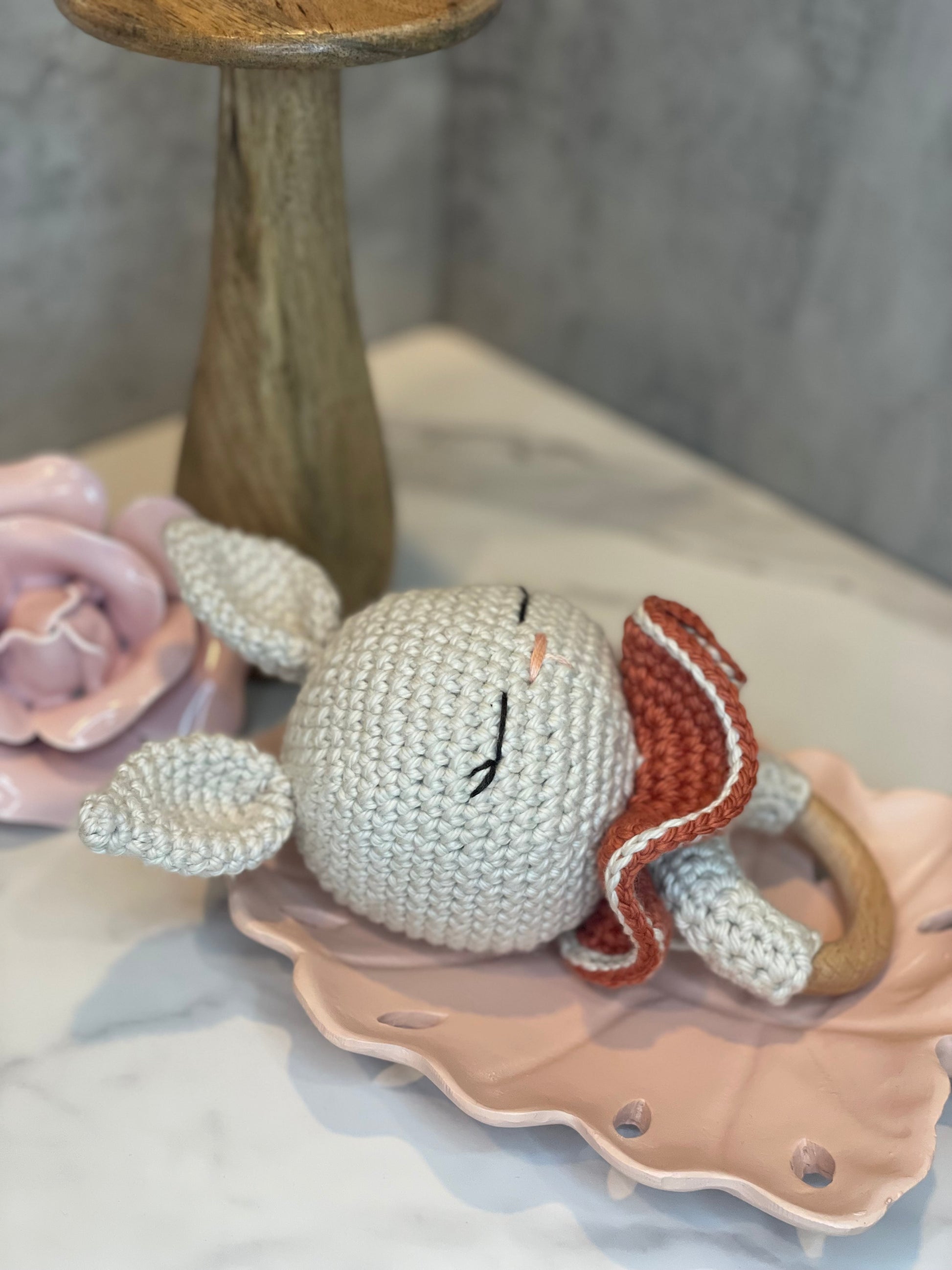 Say hello to our bunny rattles! Made with 100% cotton yarn, our crocheted bunny rattles are soft, and perfect for little hands to grip. Watch as your little one smiles and giggles while developing their motor skills. A must-have for any nursery.