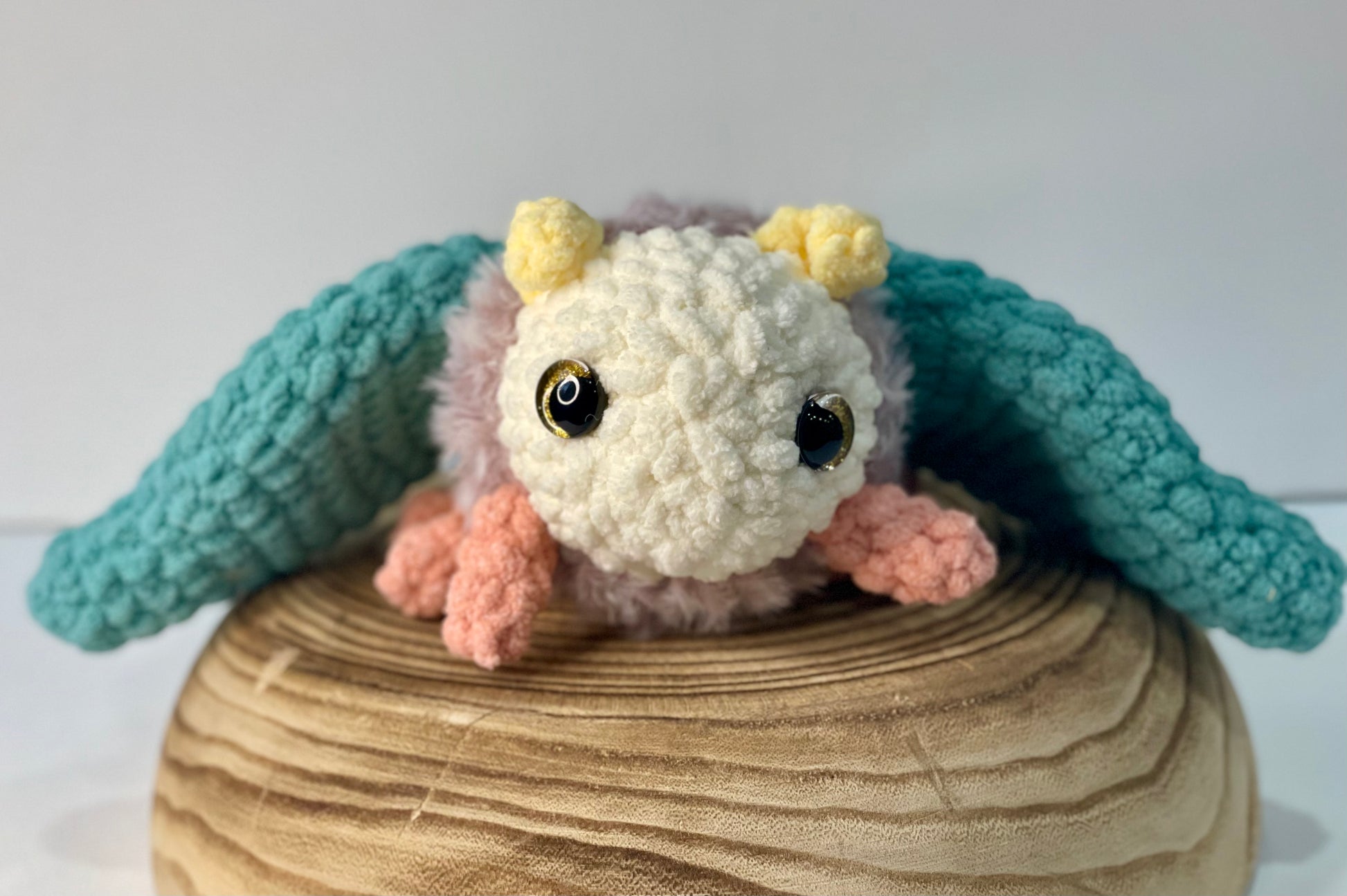 Experience the whimsical beauty of nature with Gardenia, the Luna moth! Hand-crocheted with intricate detail, this enchanting moth is sure to add a touch of magic to any space. Bring the wonders of the outdoors inside and let Gardenia inspire your imagination and spark joy.